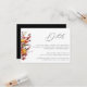 Rustic Autumn watercolor foliage and floral arrangement, wedding details card. Card features, elegant calligraphy "Details" graphic, black colour backing and multiple template lines for your details.