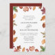 Invite guests to your wedding with our beautiful, rustic fall wedding invitations. The autumn wedding invitations feature your wedding details framed by a border of watercolor fall leaves in shades of brown, green, burgundy, gold, rust, yellow, orange, and burnt umber. The fall leaves wedding invitation reverses to a solid burgundy colour.