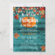 Little Pumpkin Rustic Autumn Leaves Teal Barn Wood Baby Shower Invitations.