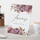Rustic floral wedding favours pedestal sign featuring watercolor fall flowers and foliage in shades of marsala, burgundy, purple, brown, and rust-orange. The elegant fall floral design is complimented by a modern calligraphy script. Personalise the wedding favours sign with your custom text. The autumn floral wedding favours sign is perfect for your fall wedding or special event. Designed to coordinate with our Rustic Autumn Floral wedding collection.