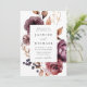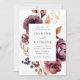 This rustic floral wedding invitation captures the essence of the romantic fall season with warm hues of marsala, burgundy, purple, cream, ivory, brown, and rust-orange. The captivating design flawlessly blends the beauty of elegant calligraphy with autumn flowers and delicate foliage, brought to life through the artistry of watercolors, creating a truly mesmerising keepsake for your special day. The back of the fall wedding invitation displays your full-bleed, vertical engagement photo. This design coordinates with our Rustic Autumn Floral wedding collection.