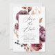 Elegant fall-themed save the date featuring watercolor autumn flowers and foliage in shades of burgundy, marsala, purple, orange, and brown. "Save the Date" is displayed in a modern calligraphy script with your names and wedding details shown below. The back of the card displays your full-bleed, vertical engagement photo. The fall floral save the date coordinates with our Rustic Autumn Floral wedding collection.