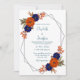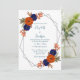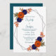 Rustic Autumn Orange Navy Blue Floral Engagement Invitation