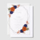 Rustic autumn floral wedding: Navy blue and terracotta burnt orange floral with fall foliage. Features teal blue and modern script typography