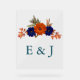Rustic Autumn Orange Navy Blue Floral Wedding Acrylic Sign