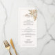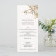 The romance of an Autumn wedding is captured in this elegant design featuring watercolor roses and greenery in warm Fall colours of terracotta, ivory, rust, chestnut, dusty blue and sage green with touches of gold sparkles. This design also features unique text graphics in a custom calligraphy script font with colour that can be customised in the design editor. Includes text fields for menu items.