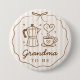 Celebrate the excitement of becoming a grandmother with this charming Baby Is Brewing Grandma To Be button. Featuring a minimalist design with a cosy coffee cup, heart, and mocha kettle, this button adds a warm and stylish touch to the baby shower. Perfect for honouring Grandma during a coffee-themed baby shower, Café Bébé brunch, or Baby Brewing celebration, it’s a keepsake she’ll love to wear proudly. A thoughtful accessory that makes the guest of honour feel extra special.