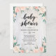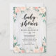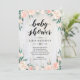 Rustic baby shower invitations for girls with a floral vintage shabby chic design. Embellished with handwritten script and light warm pink watercolor rose flowers over a white wood background. Great for any vintage, country western, or garden themed bridal shower. Customise the text with your wording.