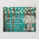 Rustic Teal Barn Wood Baby's Breath Mason Jar & Glass Candle String Lights Save the Date Wedding Announcements.