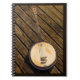 This notebook presents a photograph of a banjo on rustic wooden slats.