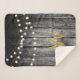 Rustic Barn Black Wood Gold String Lights Monogram Sherpa Blanket