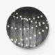 Rustic Barn Black Wood Gold String Lights Paper Plate