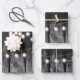 Rustic Barn Black Wood Gold String Lights Wrapping Paper Sheet