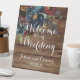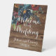 Rustic Barn Board Burgundy Navy Welcome Wedding Pedestal Sign