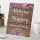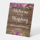 Rustic Barn Board Pink & Violet Welcome Wedding Pedestal Sign