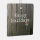 Rustic Barn Door Background in Black, Holly accent with custom Happy Holidays in white. Custom PHOTO on back. Easy to personalise text, text colour, font, add photo. Fun gift for any Dog, Pet, Horse, Barn Animal, Country lover or ANY person who loves life on the farm. Mix and match entire Christmas / Holiday Collections by TMCdesigns.