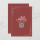 Wedding RSVP with rustic barn illustration with botanical border. Background is muted red. Personalise the text and QR code.