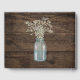 This is a beautiful country rustic wedding design featuring white baby's breath florals inside a mason jar. You can customise this design further by clicking on the CUSTOMIZE IT button.