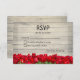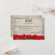 Wedding invitation response card, featuring a rustic weathered barn wall, fronted with bright red tulips