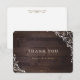Rustic wildflower floral design on dark brown barn wood background, simple and elegant, great thank you card for fall backyard country wedding, winter rustic wedding, vintage boho wedding, or outdoor botanical garden wedding.
