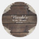 Rustic Barn Wood & Lace Romantic Elegant Favour Classic Round Sticker