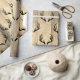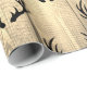 Rustic wrapping paper featuring black deer a antlers pattern. The background is a light vintage sepia barn wood planks design.