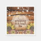 Celebrate your special day with these rustic barn wood napkins featuring string lights and sunflowers.