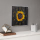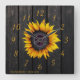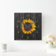 Rustic country style wall clock with a yellow gold sunflower over a dark brown barn wood background. +++++++++++++ Personalise it with your family name and text! +++++++++++ It can be a beautiful keepsake gift for your family anniversary, wedding, couple shower, housewarming.