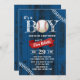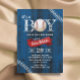 Rustic Baseball Sports Navy Blue Barn Wood Boy Baby Shower Invitations.