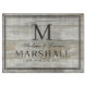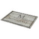 Rustic light brown driftwood graphic bbq cutting board with the couples first names, last name monogram, full last name, and wedding date available in customisable templates. A cute farmhouse barbecue themed gift to help celebrate a summer wedding cookout.