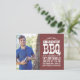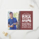 Cool rustic graduation barbecue party invitation with distressed vintage typography. Use the design tools to choose any background colour to coordinate with your school colours or party theme. Add your senior photo and graduation party details on the front with a second photo, your name, class year and school name or other text on the back side. Use the design tools to add more photos and text, edit fonts and colours to create a unique graduation announcement and party invitation.