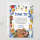 Wrap up your Baby-Q celebration with this mouthwatering thank you card featuring watercolor grill fare, picnic table accents, and string lights. Perfect for expressing heartfelt appreciation to guests who shared in the laughter, food, and joy. The cosy gingham background and BBQ-themed illustrations tie it all together for a warm, memorable note of gratitude.