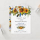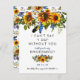 Featuring a classic white background that can be changed to any colour, a rustic blue & sunflower floral display, feathers, and the sweet wedding wording "I can't say "I do" without you".