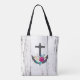 Rustic Beach Anchor & Bold Floral Summer Nautical Tote Bag