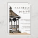 Please enjoy this Beach Gazebo Wedding Invitation. It contains a peaceful scenic view of a Gazebo sitting in a sandy beach or lake. It's great for ceremonies upon a gazebo or outside structure. It sets an intimate and lovely expectation on your special day.