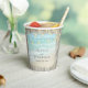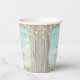 These rustic coastal wedding paper cups feature a scene of aqua blue ocean waves crashing against the beach, with a frame of weathered wood, and string lights accenting the top. Check out the collection for matching paper plates and napkins, and other table décor.