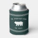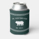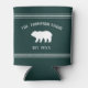 Perfect for your cabin or vacation home, these cool personalised can coolers feature your family name or house nickname on a hunter green background, with your year established and a bear illustration. Rope stripe detailing at the top and bottom completes the design for a rustic farmhouse style look.