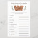 Cute bear theme twins' baby shower baby word scramble card featuring illustration of cubs. The list of words on this card are all related to babies and they are scrambled. The guests are going to compete who can unscramble all of them first! ANSWER KEY: 1. car seat 2. milk 3. playpen 4. pacifier 5. diaper 6. rocking chair 7. nursery 8. baby monitor 9. swaddle 10. formula 11. rubber ducky 12. stroller.