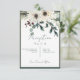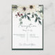 This rustic wedding reception card design features a top bouquet of pine, red berries, white flowers and eucalyptus with a sprinkle of faux gold glitter. The background is white with a dark green and tan thin frame. This design is part of the Rustic Berries Winter Floral Wedding Suite of cards created by Simply Farmhouse Press.