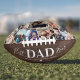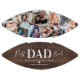 Unique fathers day football featuring rustic wood print background, a photo collage of 12 family pictures for you to replace with your own, the saying "BEST DAD EVER", a cute heart, and the childrens names.