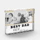 Rustic Best Dad Father Family 3 Photo Block. Beige rustic background with trendy typography. Personalise with 3 favourite photos and your names in the sweet message. Black and white photos look great on this design. Change the text dad into daddy, pap or papa if you want. A perfect gift for a dad or a new dad on Father`s Day, birthday or Christmas.