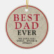 Rustic Best Dad Red Typography Photo Ceramic Ornament. Custom photo on the backside and rustic background. Personalise with your names and photo and make a great gift for dad.