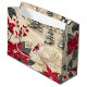 Rustic Bird and Poinsettia Christmas Pattern (12) Large Gift Bag