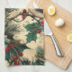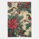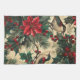 Rustic Bird and Poinsettia Christmas Pattern (13) Tea Towel