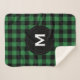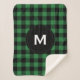 Rustic Black and Green Plaid Pattern Monogram Sherpa Blanket