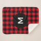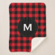 Rustic Black and Red Plaid Pattern Monogram Sherpa Blanket