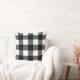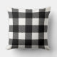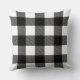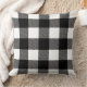 Stylish throw pillow design features a rustic modern farmhouse black and white buffalo plaid pattern.