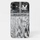 This phone case features a black and white photo of distressed wood and windows along with customisable initial and message.