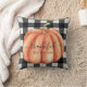 Rustic Black and White Plaid Watercolor Pumpkin Cushion
