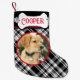 Rustic black and white plaid with pine cone small christmas stocking